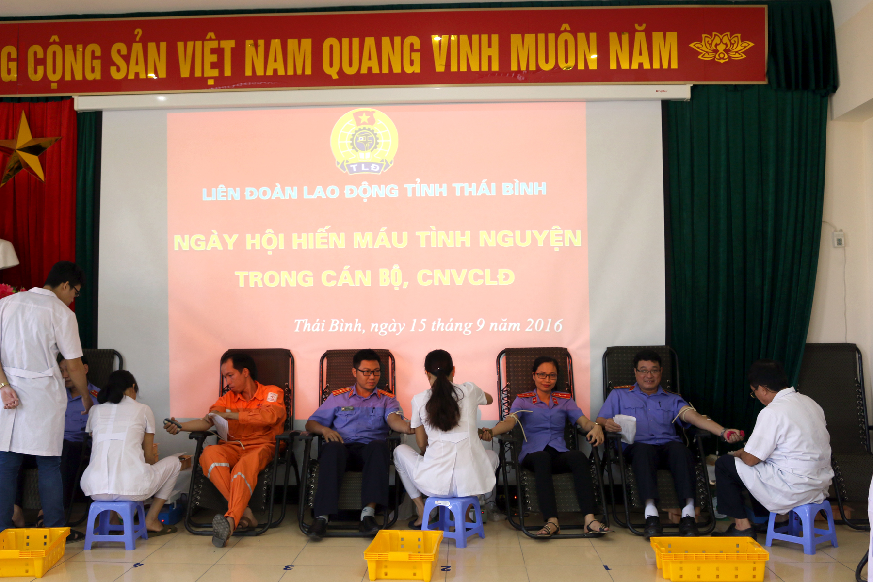 Đúng 07h30 sáng ngày 15/9/2016 tại Liên đoàn lao động tỉnh Thái Bình đã diễn ra Hội hiến máu tình nguyện, các đoàn viên Công đoàn của Viện kiểm sát nhân dân tỉnh Thái Bình  đã có mặt để kiểm tra sức khỏe và hoàn thành các thủ tục thực hiện nghĩa cử hiến máu tình nguyện với tổng lượng máu hiến là 1100ml.