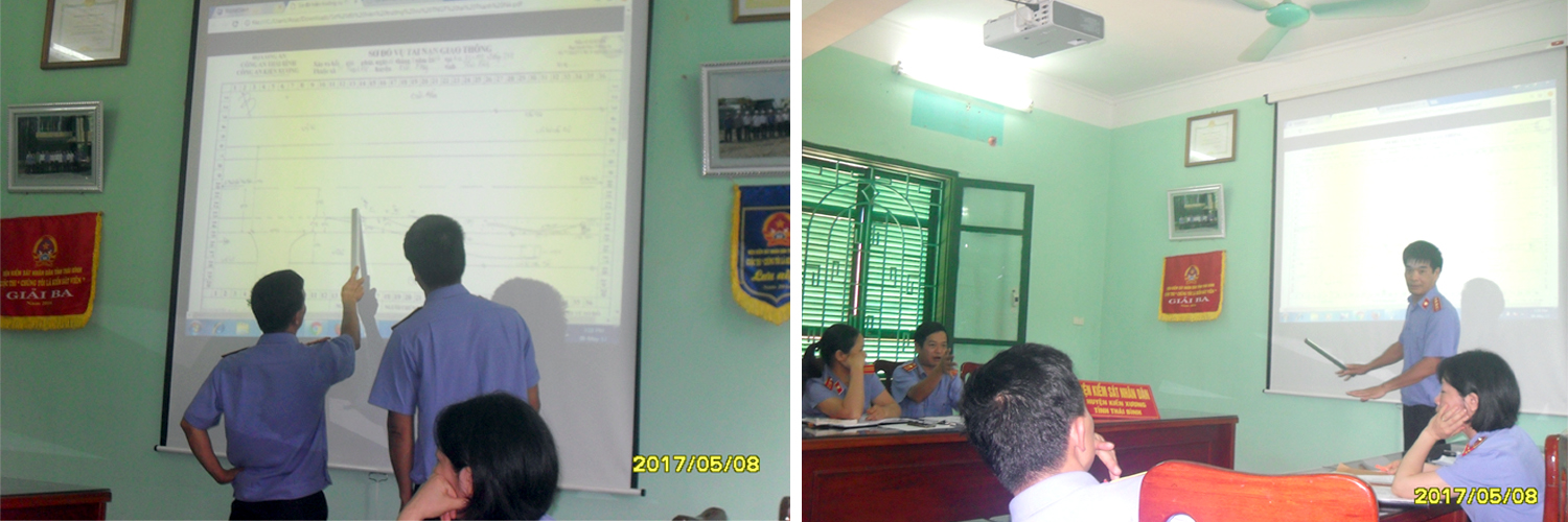 Để đảm bảo những người tham dự có thể xem xét trực tiếp một số tài liệu có trong hồ sơ vụ việc, đồng chí Viện trưởng đã chỉ đạo scan một số tài liệu như sơ đồ hiện trường, biên bản khám nghiệm hiện trường, biên bản khám nghiệm phương tiện và tử thi thành file PDF và chiếu bằng máy chiếu tại phòng họp của đơn vị để các đồng chí trong cuộc họp tiện theo dõi, phân tích và đưa ra những ý kiến.