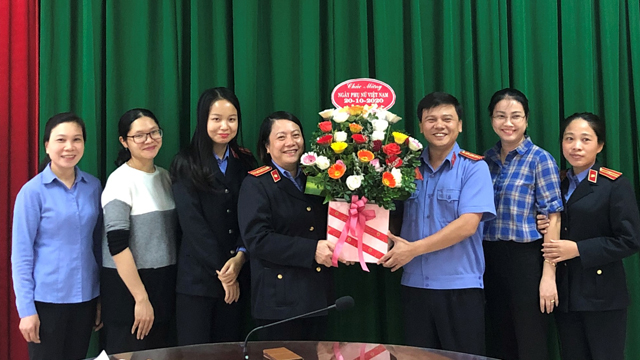 10/26/2020 7:10:53 AMChiều 19/10/2020, Viện kiểm sát nhân dân huyện Thái Thụy tổ chức buổi gặp mặt ôn lại truyền thống 90 năm ngày phụ nữ Việt Nam. Đồng chí Lê Thị Thảo - Phó viện trưởng, Chủ tịch công đoàn, Trưởng ban nữ công của đơn vị thay mặt chị em phụ nữ đơn vị, ôn lại truyền thống lịch sử tự hào của phụ nữ Việt Nam trải qua các thời kỳ giành độc lập dân tộc, kháng chiến bảo vệ Tổ quốc và công cuộc xây dựng, đổi mới đất nước ngày nay. Dự buổi gặp mặt, đồng chí Nguyễn Cao Cường - Huyện ủy viên - Bí thư chi bộ - Viện trưởng Viện kiểm sát nhân dân huyện Thái Thụy, phát biểu tri ân những đóng góp to lớn của các thế hệ phụ nữ Việt Nam nói chung và phụ nữ trong ngành, đơn vị nói riêng đồng thời có lẵng hoa tươi thắm chúc mừng toàn thể cán bộ nữ trong đơn vị.
