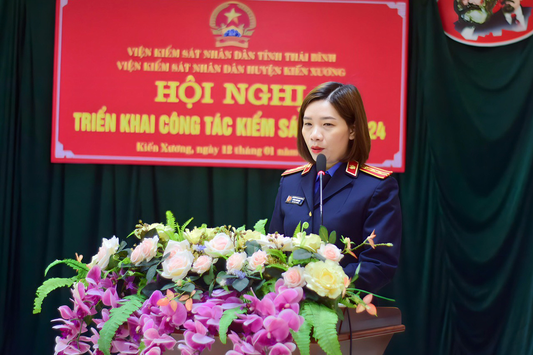 Đồng chí Lê Thị Thúy Ngọc phát biểu trong Hội nghị triển khai công tác kiểm sát năm 2024