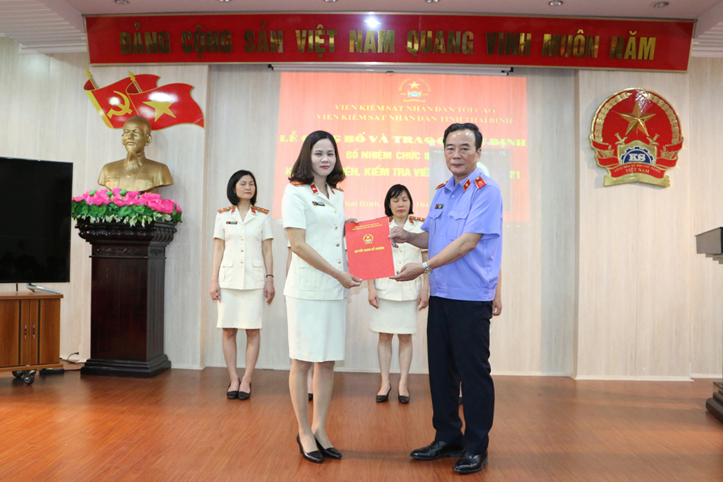 Ảnh đồng chí Bùi Thu Hiền nhận quyết định bổ nhiệm Kiểm tra viên chính